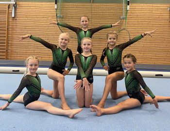 Gleichzeitig turnten Angelina Wolf, Tita Felgentreff, Lene Marie Schnurrbusch, Hannah Elshepokshy, Mia Sophie Pasini und Clara Lenz in der Bezirksklasse 1 und zeigten dort die P6 und P7. Auch diese Mannschaft startete am Balken und zeigte dort auch zum ersten Mal Räder im Wettkampf. Am Boden zeigten sie schöne Übungen, für die sie mit guten Punkten belohnt wurden. Am Sprung trauten sie sich zum ersten Mal über den Tisch und zeigten dort ihre Überschläge. Auch am Barren präsentierten sie erstmals ihre Vorwärtsumschwünge und sammelten wichtige Punkte. Von insgesamt neun Mannschaften erreichten sie einen guten fünften Platz.